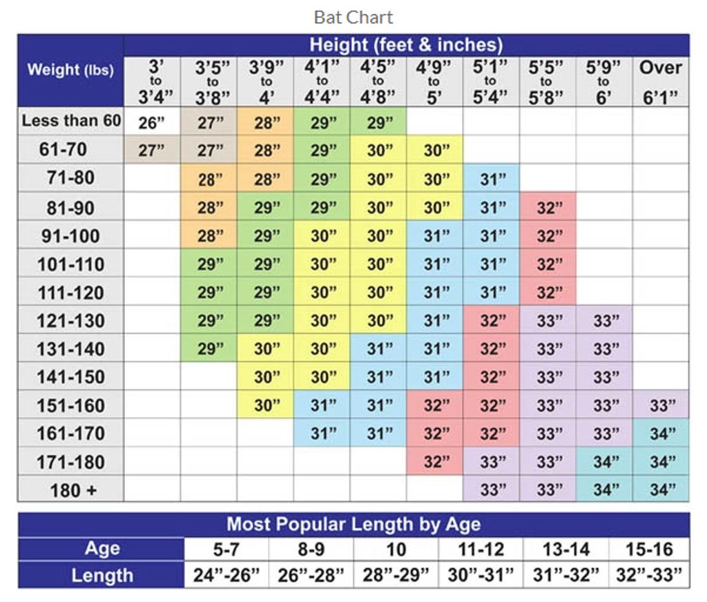 - See the link at bottom of the page for more information on bat sizing recommendations